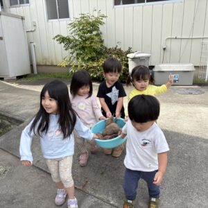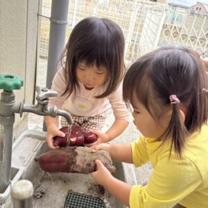 園の畑で採れたさつまいもを、2歳児うさぎ組のお友達がキレイに洗ってくれました✨