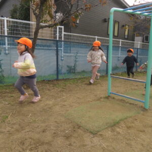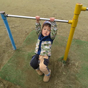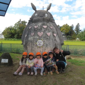 大きなトトロにご挨拶した後、鉄棒にぶら下がったり広場を走り回ったりして、楽しく遊んできました。