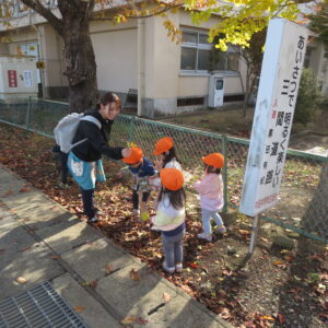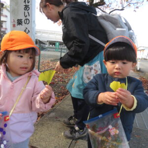 その後は中学校脇の歩道で「秋の宝物🍂」をたくさん見つけて、大満足で園に戻りました。