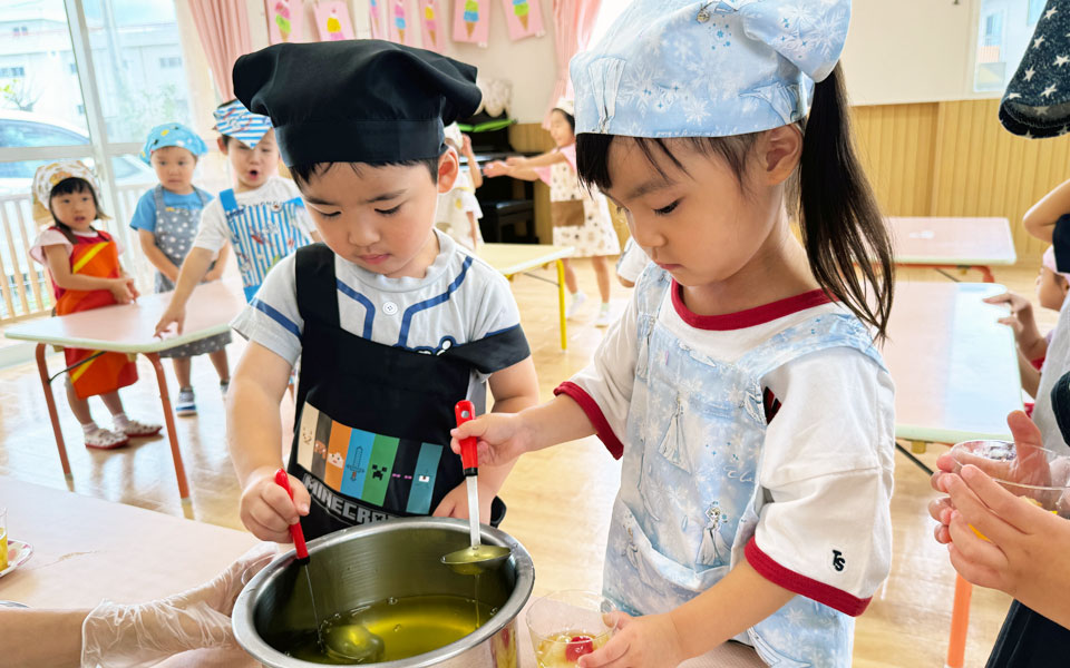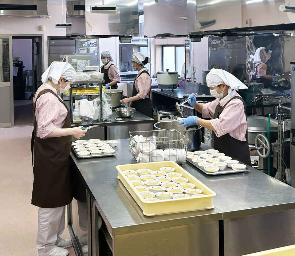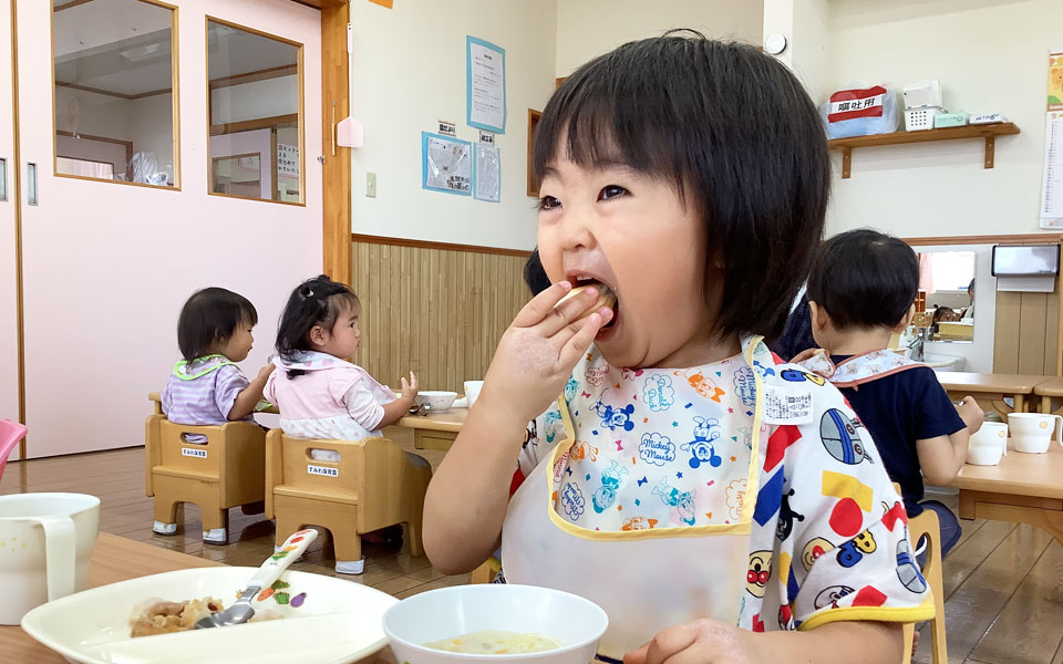 さくら学園では食の教育を考えて、学園内で愛情込めて調理した給食を提供しています。