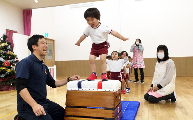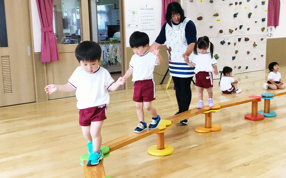 こども体育研究所の専任講師による「幼児体育教室」が「正課教室」として始まり14年目となります。笑顔と元気がはじける、子どもたちが大好きな時間として定着しています。(毎週火曜日/みどりご園・さくら幼稚園)
