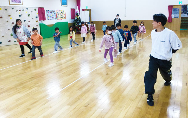ReViVaL(リバイバル)代表の鹿野仁(HEAT)先生に、さくら幼稚園園児とさくら学童みらいクラブの小学生へのレッスンをしていただいています。「ダンスで笑顔と元気に!」をモットーに活躍しているヒート先生のレッスンに子供たちの笑顔が弾けます。(月2回)