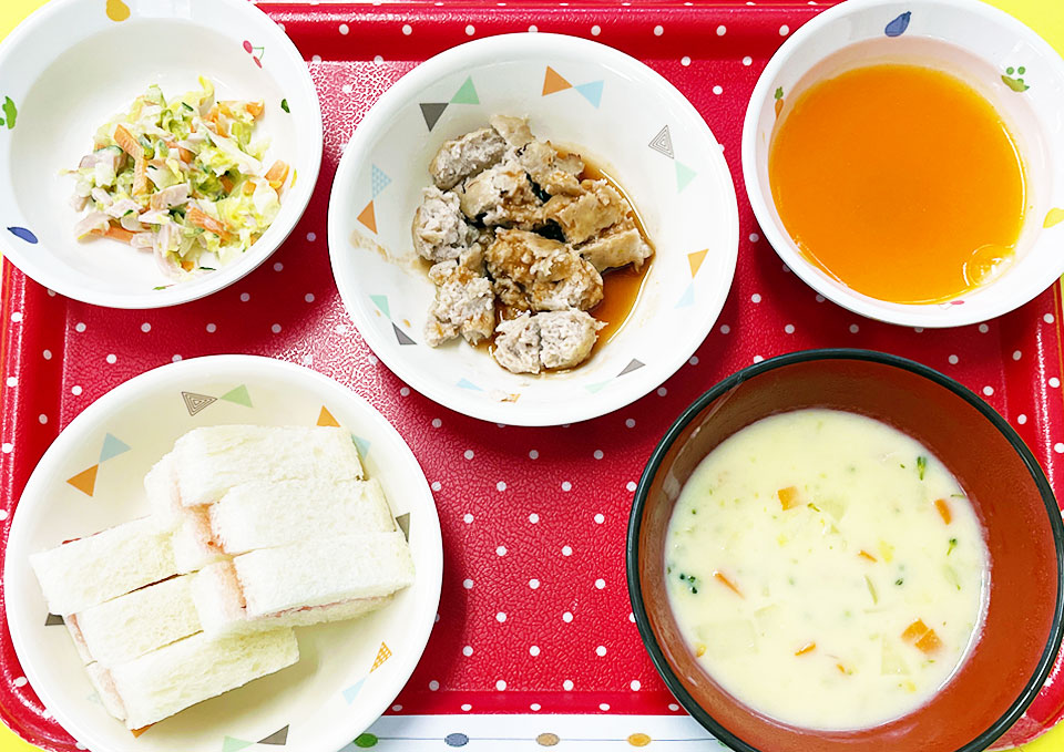 当学園が運営する施設の給食は、すべて学園内の調理室で愛情込めて作っています。栄養士による栄養管理はもちろん、一人ひとりが食べる楽しさを感じられる環境づくりを大切にしています。また、衛生面の管理も徹底しています。