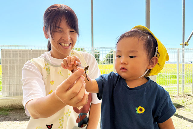 保育者との温かなかかわりを通して、人への信頼感を育み、身のまわりの環境へ興味・関心を広げていく。