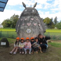 秋晴れの良い天気🌞 2歳児クラスのお友達は、中学校方面に散歩に出かけてきました。 途中、学園内のみどりご園トトロ広場にちょっと寄り道。 大きなトトロにご挨拶した後、鉄棒にぶら下がったり広場を走り回ったりして、楽しく遊ん …